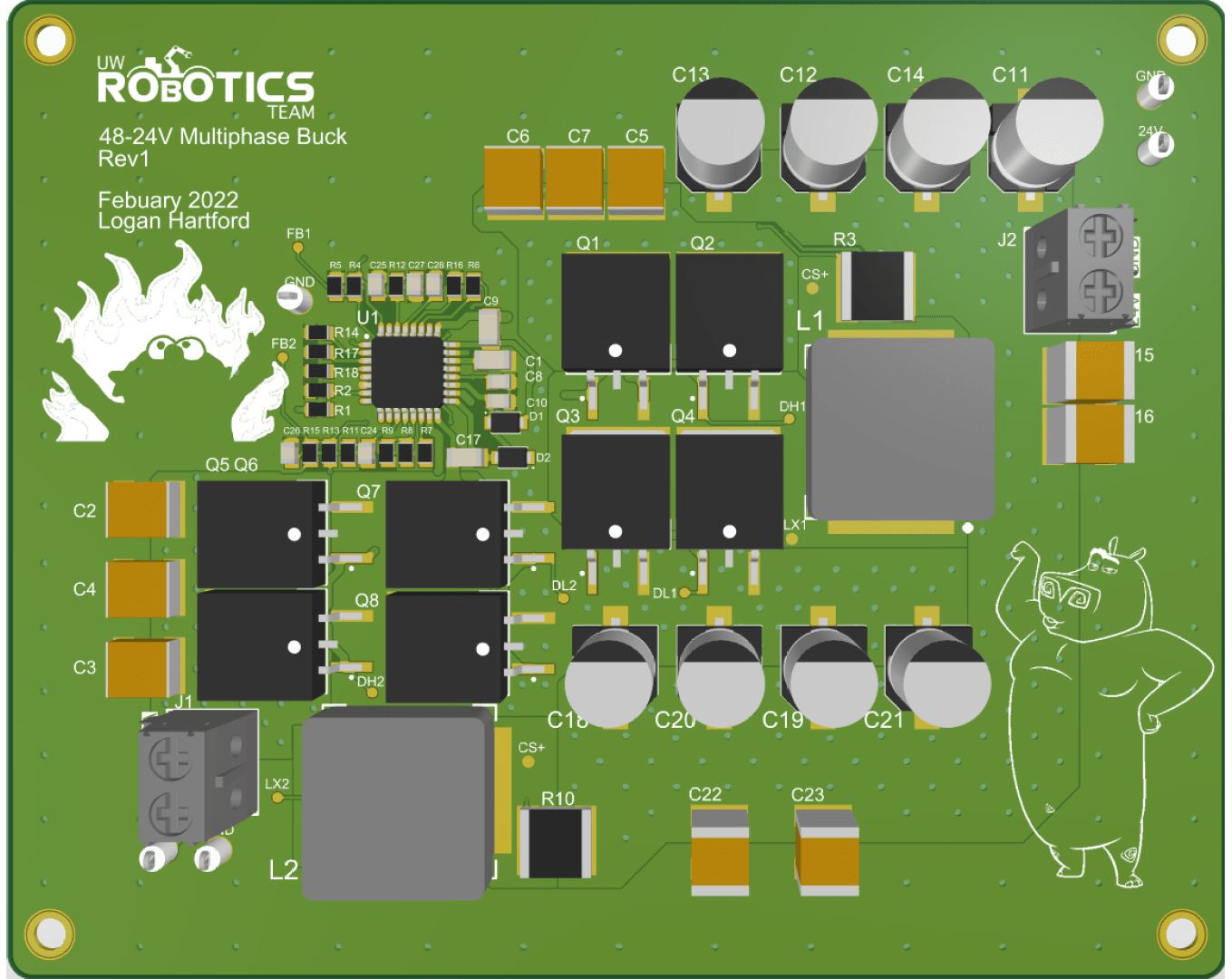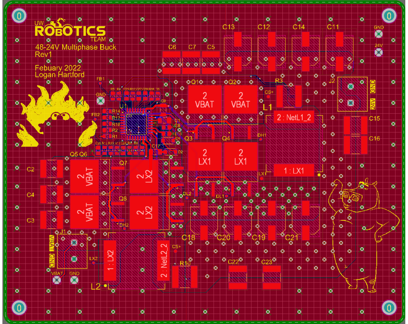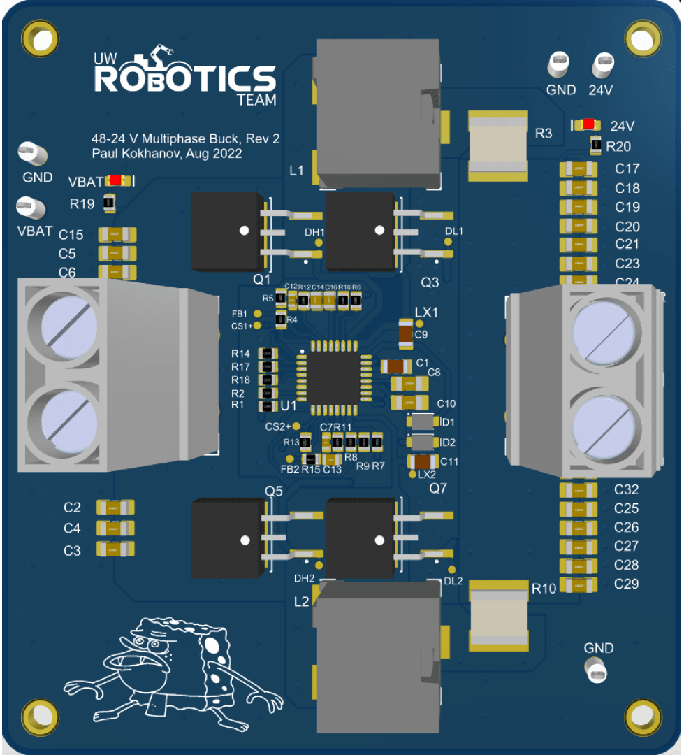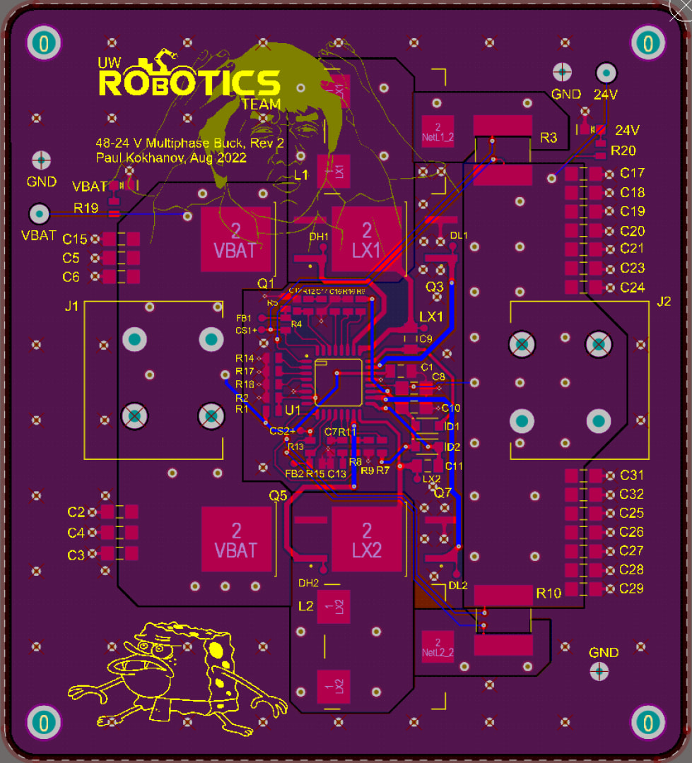 Revision 2 of the 24V Multiphase Buck Converter was completed by Paul Kokanov.