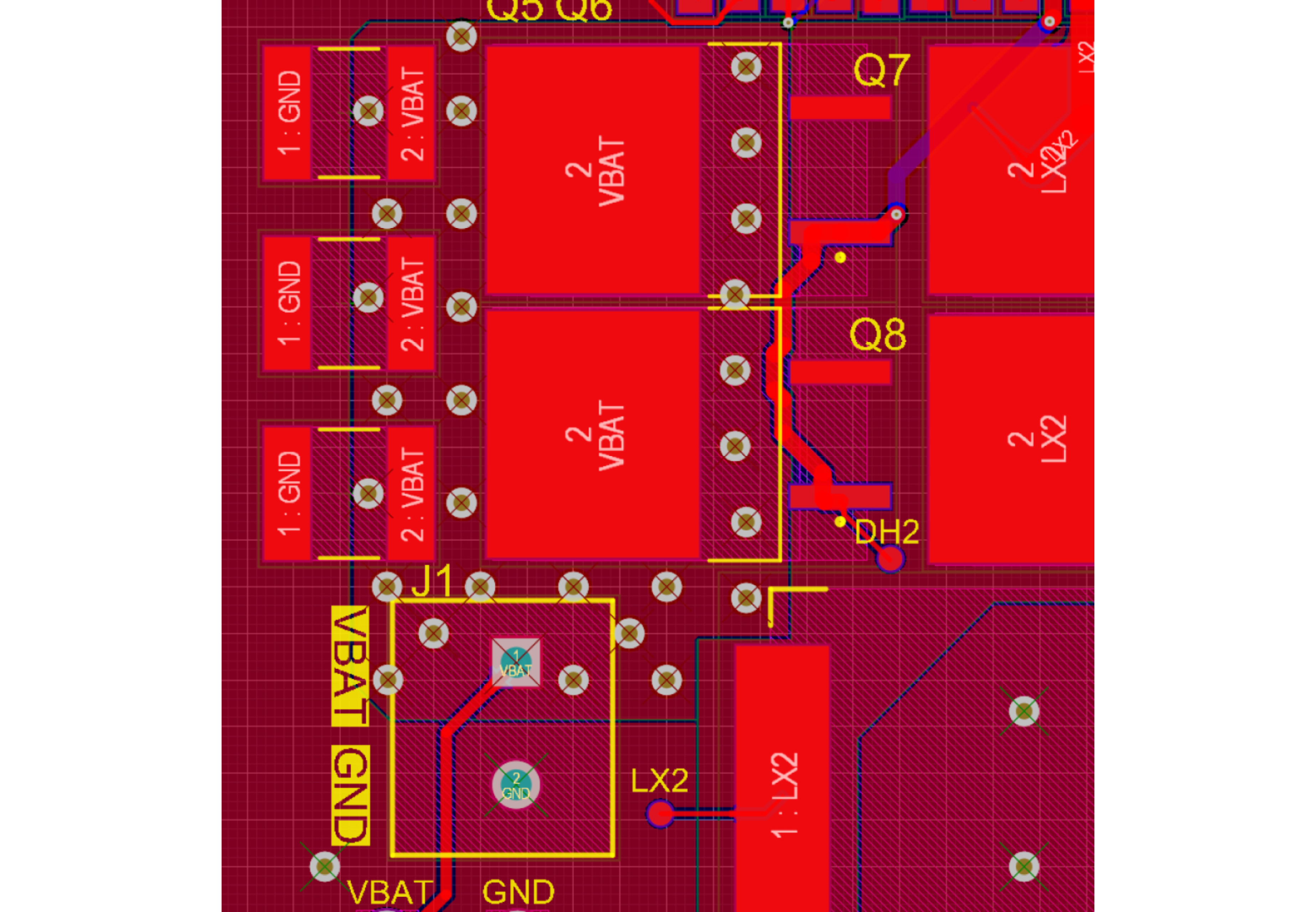 On the top layer, there is also a GND pour anywhere there isn’t already a polygon or component and the entire bottom side of the board has a GND pour as well to maximize current return pathways.