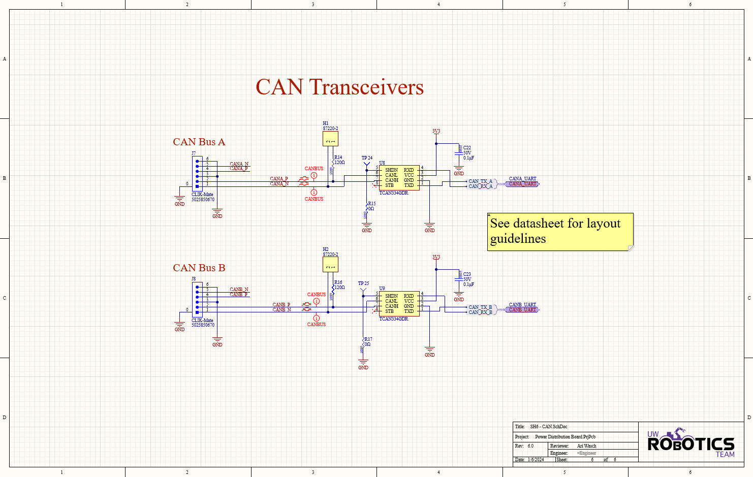 The CAN transceiver and the 3V3 circuits were common to many of our designs and known to work so no work was needed on these schematics