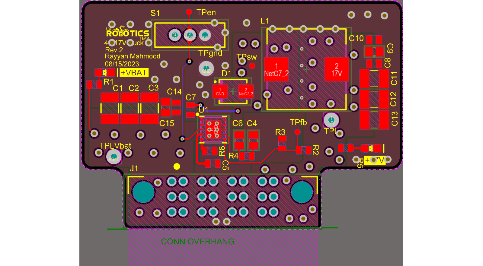 The layouts for the 5V and 17V buck converters were created by Melissa and Rayyan respectively. The layouts were created by referencing the data sheet and some layout references they had collected