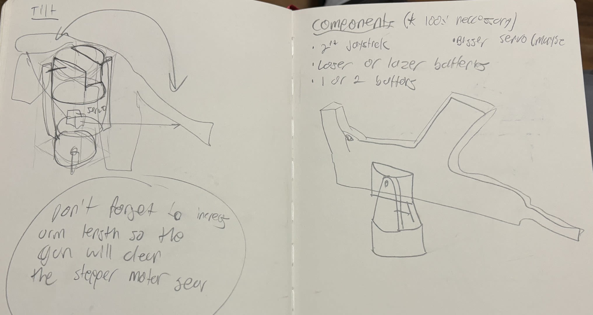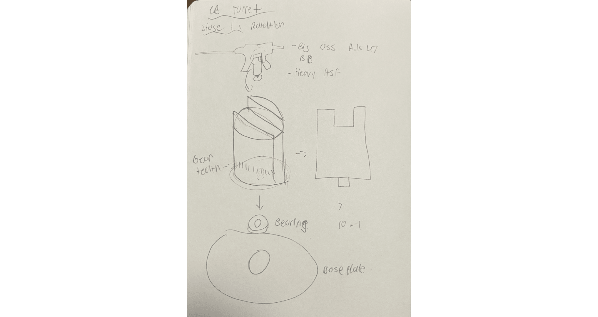 The mechanical engineering for this project was by far the most difficult portion. It took a long time for me to wrap my head around how to make the gun able to move in two different axis.